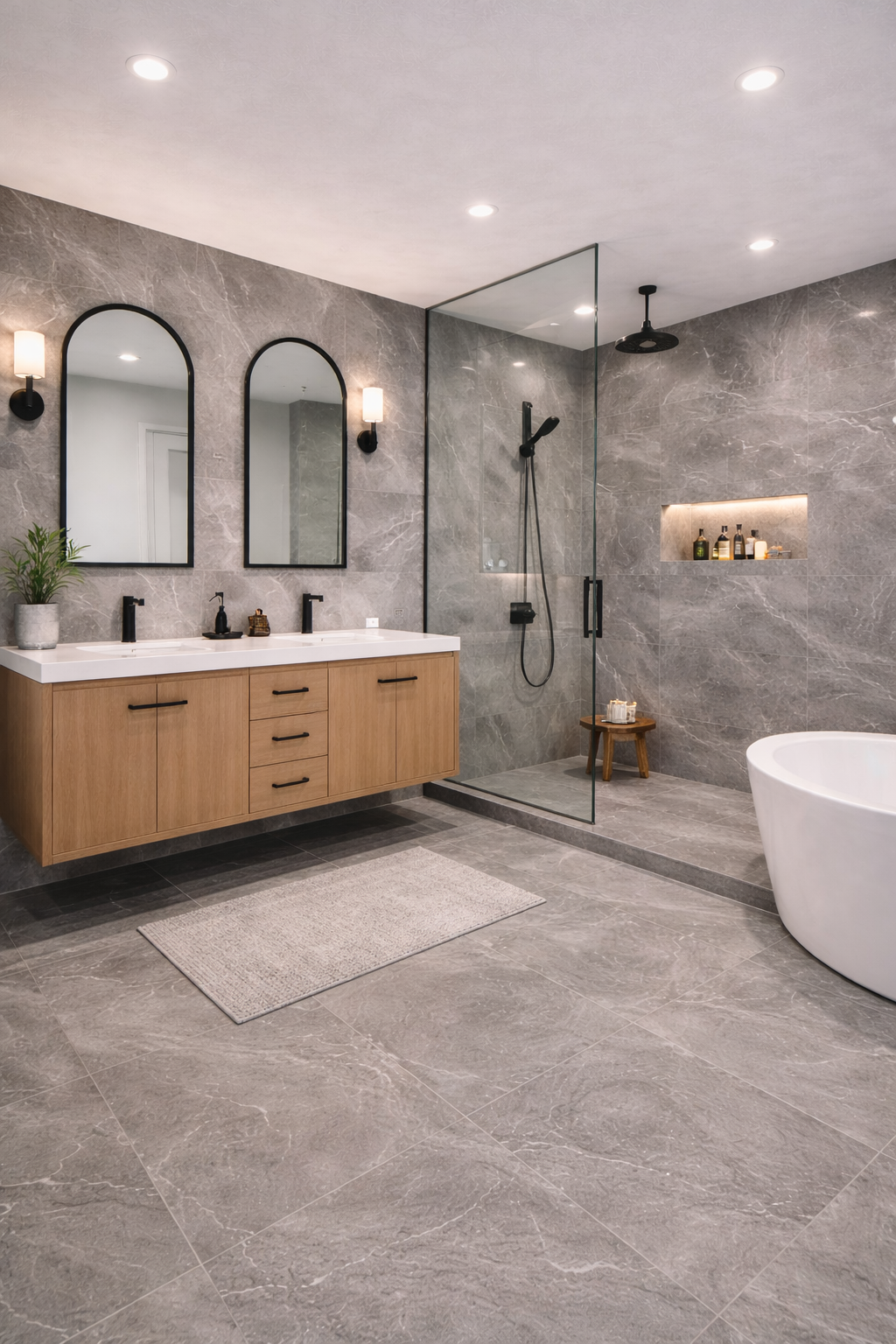 Discover our porcelain tile collection, offering a perfect blend of strength and sophistication. From large-format porcelain slabs to refined matte and glossy finishes, these tiles are ideal for kitchens, bathrooms, living rooms, and commercial flooring projects. Resistant to scratches, stains, and moisture, porcelain tiles deliver long-lasting beauty for modern living.